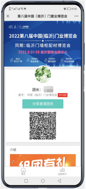 第五步:點(diǎn)擊“分享邀請(qǐng)團(tuán)員”按鈕一鍵轉(zhuǎn)發(fā)好友或分享至朋友圈,邀請(qǐng)你的朋友或者同事一起來(lái)參觀!