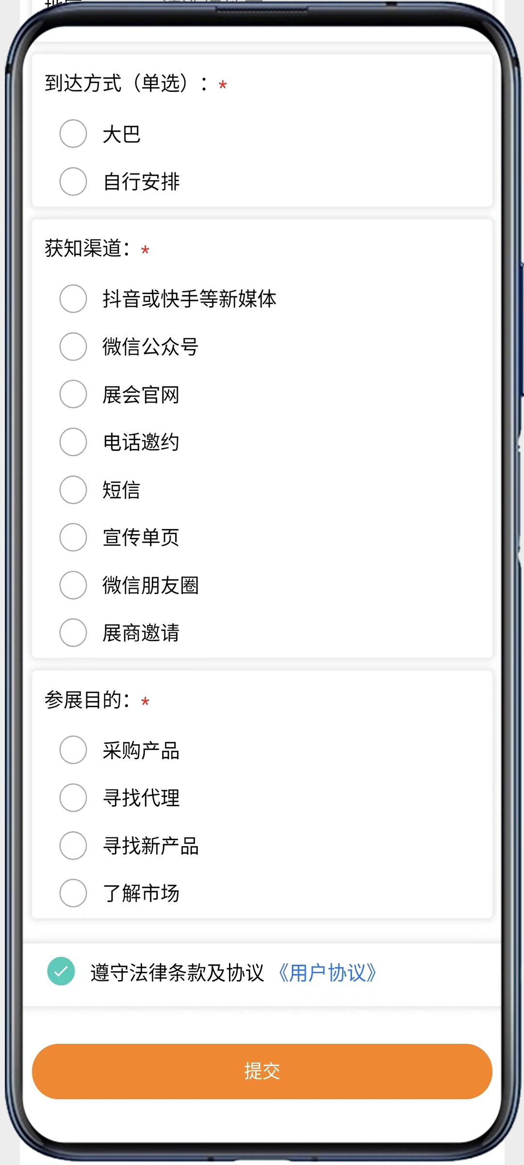 點擊右下角“參觀報名 ”中的“參觀登記”前往觀眾登記頁面。