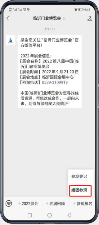 第二步:點(diǎn)擊右下角“參觀報(bào)名 ”中的“組團(tuán)參觀”,進(jìn)入組團(tuán)頁面。