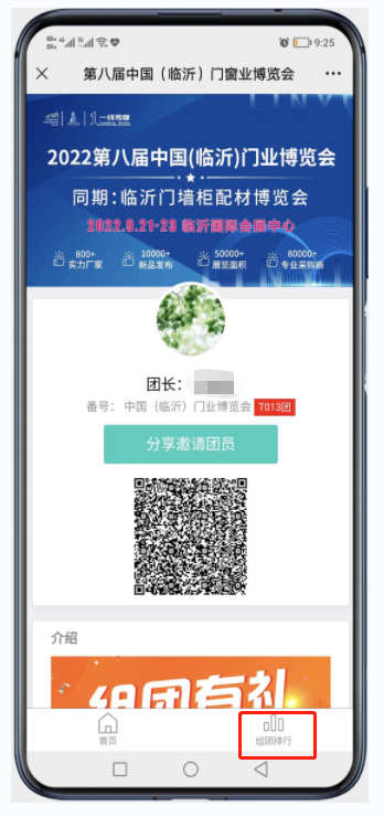 第五步:點(diǎn)擊“分享邀請(qǐng)團(tuán)員”按鈕一鍵轉(zhuǎn)發(fā)好友或分享至朋友圈,邀請(qǐng)你的朋友或者同事一起來參觀!